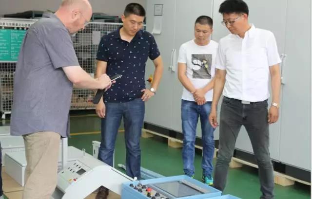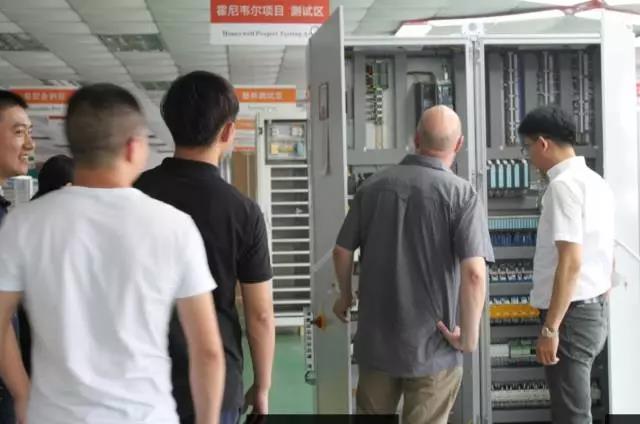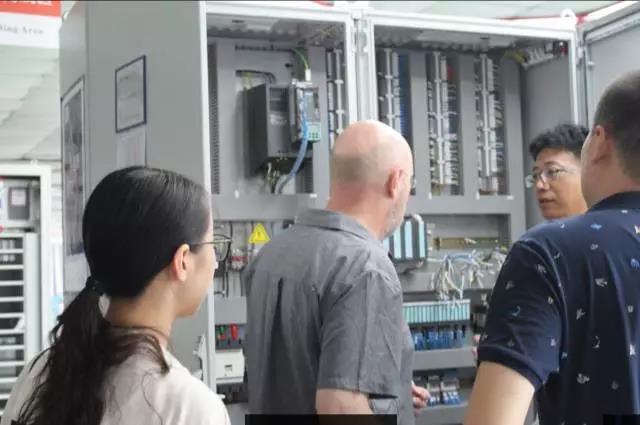 随后Hoppe先生与周女士在我司人员的陪同下,参观了电控柜制作车间,参观过程中俞总经理向Hoppe先生展示了我公司所制作的成品电控柜。